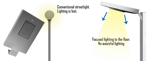 One of the qualities of Slim Economy is that its illumination is focused exclusively on the ground at an angle of 120 º so that no energy is wasted upper zones.Slim Economy Streetlights illuminate only the areas that are really necessary, thanks to its light sensor that turn on and off with the sunset and sunrise. The motion sensor will increase automatically the lighting when it detects presence of a pedestrian or vehicle. |