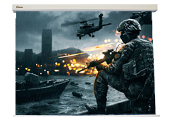 Pantalla de proyección Eléctrica · 290´´ (590x443) Frontal 4:3. Superficie con bordes negros de 5 cm. (superior: 20 cm.) y trasera blanca. Sin Carenado (Longitud cm: 629). Proyector recomendado: 4:3 (XGA, SXGA, SXGA+). Velocidad del motor (RPM): 17. Ligera y de fácil montaje a pared o techo. |