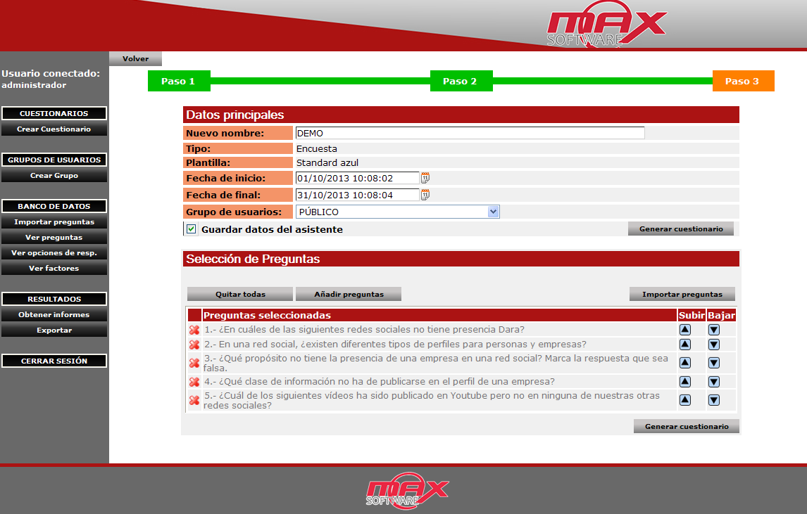 With its attractive design, choice of characters, colors and structure will be very intuitive and easy to handle. You can adjust each encuenta or test your tastes, the corporate colors of your company or making reference to the subject matter thereof.