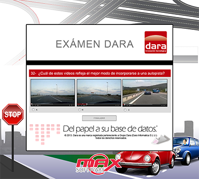 In the image shown on the right side of these lines you can be seen an example of driving school exam. In it you can select the correct answer contemplating several videos as options. With INTEGRA MAX can add videos, images, sounds, text or links to websites to the response options of their tests and surveys. Easily and comfortably.