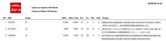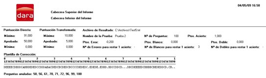 Based on this same configuration and depending on the model reader may be printed directly on each test the number of hits obtained, errors, white, double and score both direct scale and the final scale. Also you can print on paper (or pdf for example) the results and all the information generated in a MS Excel file, the correction parameters and the resulting statistics with graphical representation. Excel also in a very simple way you can vary the passing grade and verified as approved and suspended vary and set the optimum choice.