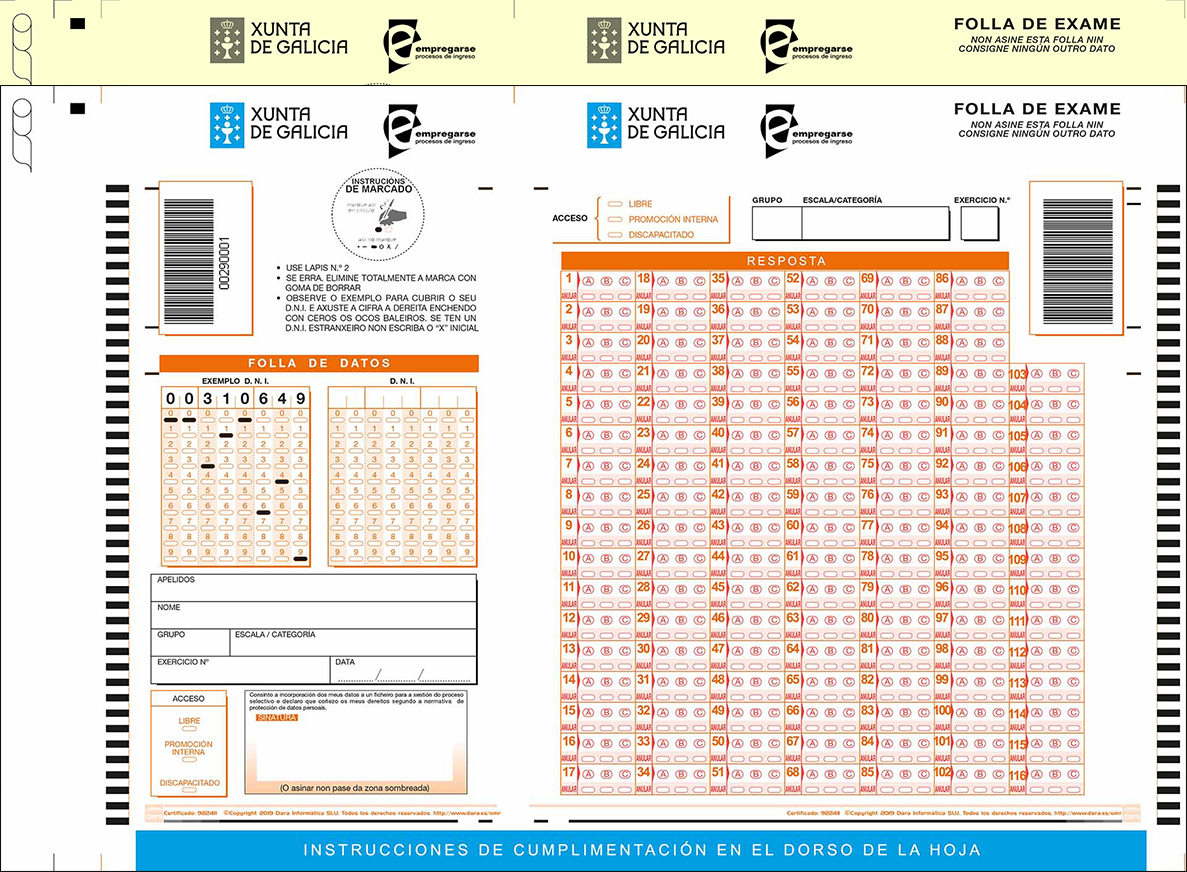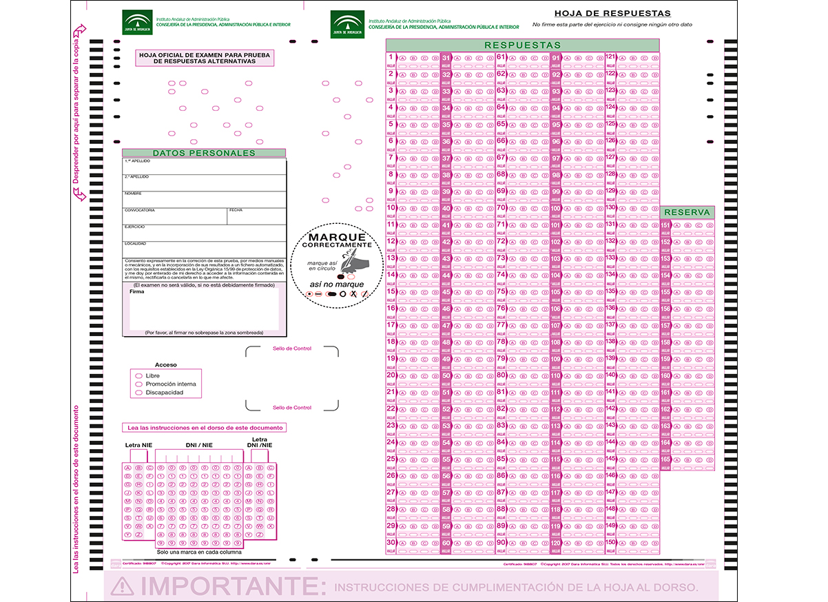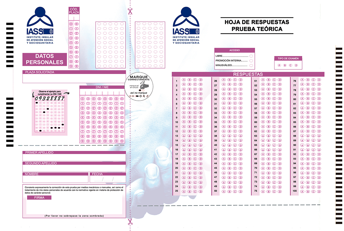 We can provide everything you need to carry out their selection process. The forms to be filled (if desired customized with the logo of your school, administration, agency or company), automatic reading later in their facilities, evaluation and procurement of final grades to your specifications, procurement and printing direct reports results and elaborate as needed.