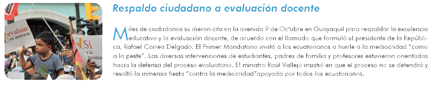 El pasado mes de mayo 2008 concluyó el Censo Nacional de Evaluación al Profesorado de Ecuador. Nuestra experiencia y tecnología han permitido realizarlo en un período mínimo de tiempo, con total objetividad y rigor. Un mes más tarde aún sigue acaparando portadas en los periódicos nacionales ecuatorianos.
